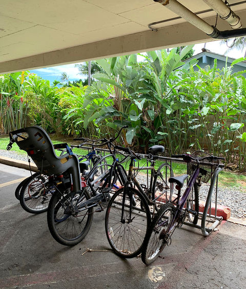 Poinciana Manor’s distinctive architecture, with its characteristic wood shingle siding, houses 180 mostly two-bedroom two-bath units over three floors above a covered parking garage. Poinciana's residential units, serviced by three elevators, feature spacious proportions with high ceilings, comfortable layouts, private lanais and laundry, and two covered parking stalls. Second-floor units benefit from extra-large lanais, third-floor units enjoy treetop views, and fourth-floor units have extra high cathedral ceilings.